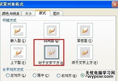 選擇板式選項卡,選擇板式為襯于文字下方。點擊確定。