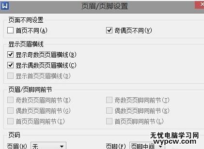 2、如果希望在奇偶頁顯示不同的文字就要點擊選項,彈出頁眉/頁腳設置,在奇偶頁不同的選項上打勾