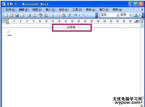 1、首先就是再添加頁面的時候要再尾頁點擊插入,然后在下拉菜單上面點擊分隔符