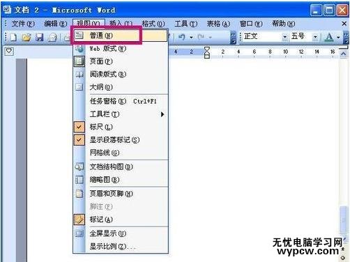5、點擊視圖以后,再下拉菜單上面點擊普通