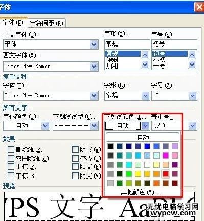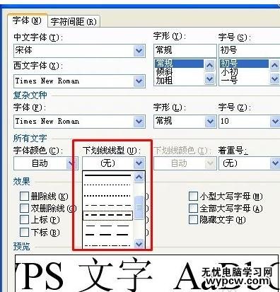 3、選中字體選項卡,選中一款自己喜歡或者符合主題的下劃線。