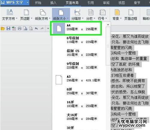 3、再點擊旁邊的“紙張大小”選擇規格,