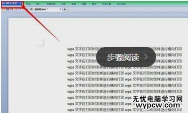 步驟2:將鼠標移到wps軟件的左上角“wps文字”處,點擊后面的那個折疊小三角形,打開子菜單項。
