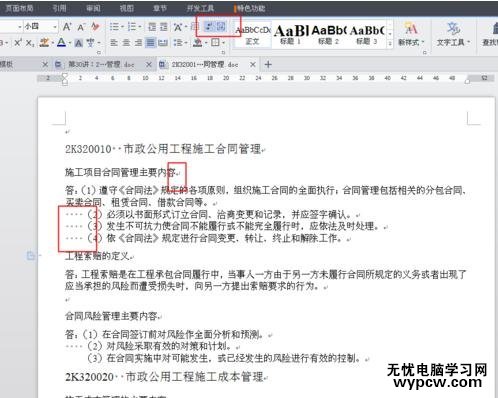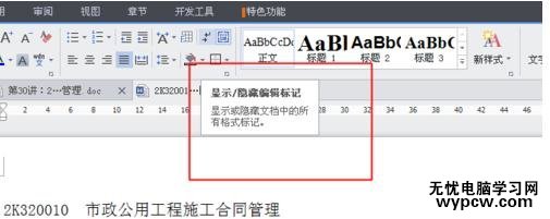 當顯示/隱藏編輯標記變藍后,段落標記還有其它標記全都顯示出來了。
