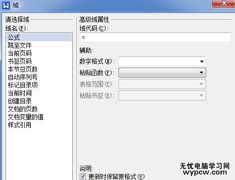 可以設置函數和格式,域代碼=