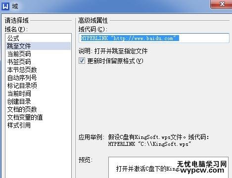 就是一個超鏈接,可以鏈接文件或網頁,域代碼 HYPERLINK