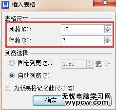 如果插入表格的行數或列數超過10,可以點擊下拉菜單里的【插入表格】選項,彈出插入表格窗口,如下圖所示。