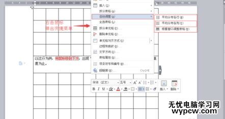 方法三:自動調整方法。鼠標移到任意地方,右擊鼠標,彈出快捷菜單。然后點擊”自動調整“,接著將出現子菜單”平均分布各行“”平均分布各列“”分局窗口調整表格“。可以根據自己所需進行選擇。