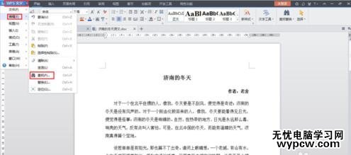 首先在電腦上打開已經(jīng)編輯的WPS文字文檔,比如我們打開老舍先生《濟(jì)南的冬天》文字文檔,如下圖所示。