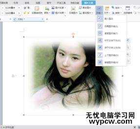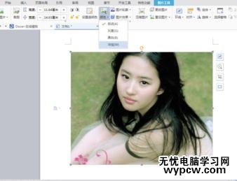 選中圖片。圖片右邊有四個選項,首先就是布局選項,在工具欄中也有。這個與我們單純的編輯圖片無關