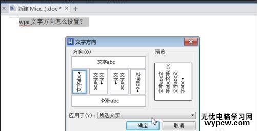 wps文字方向怎么設置成豎向?選中要改變成豎向的文字,點選文字方向中的豎向,確定即可。