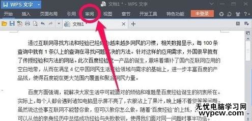 打開(kāi)文稿以后!然后點(diǎn)擊菜單欄上的審閱!