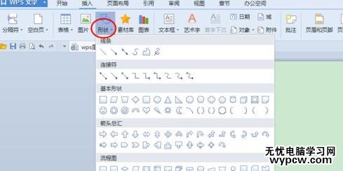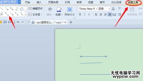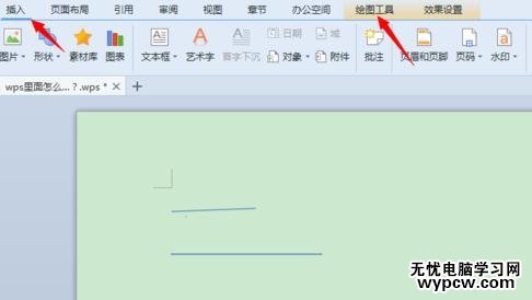 如果要畫一條直線的話,那么就可與通過插入進行了。這里要說的是,我的wps目前是最新版的,當你一旦插入圖形的形狀了,那么右邊就會繪圖工具了。
