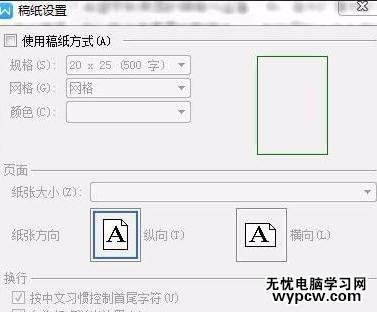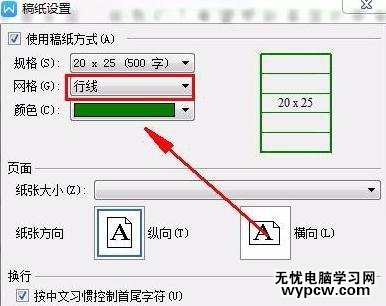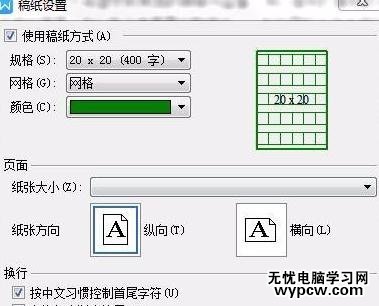 彈出稿紙?jiān)O(shè)置對話框,在使用稿紙方式打鉤。