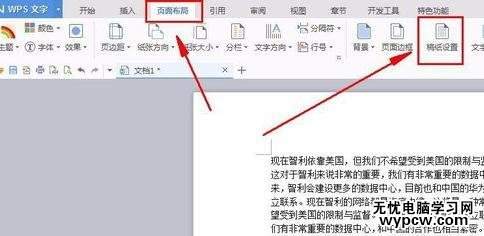 選擇頁面設(shè)置——單擊打開稿紙?jiān)O(shè)置