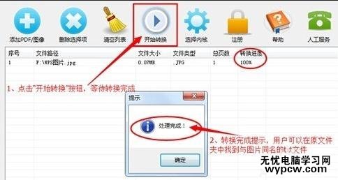 第三步:點(diǎn)擊“開始轉(zhuǎn)換”按鈕進(jìn)行轉(zhuǎn)換,轉(zhuǎn)換完成后捷速圖片文字提取大師會出現(xiàn)轉(zhuǎn)換完成的提示窗口,此時用戶就可以在保存位置看到與WPS圖片同名的txt文件。