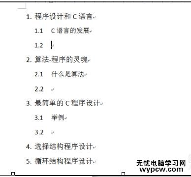 步驟五:(根據文檔的實際情況選擇1、2、3級,文檔的分級不要太多,以免目錄變得很冗長)