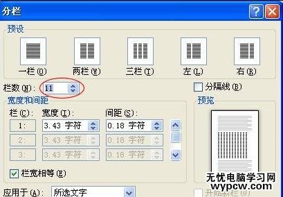 步驟四:如果想要分欄中的數目還不是自己想要的可以單擊進入“更多分欄”,在彈出的“分欄”窗口里面的“欄數”后面設定數目,最高上限為11,看需求設置。
