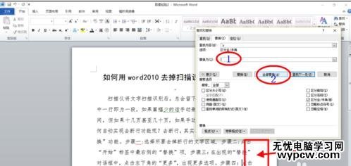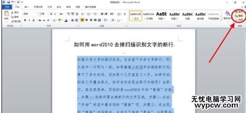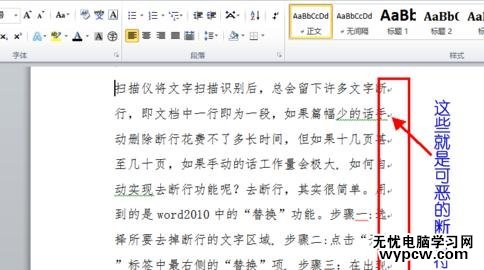 步驟二:去掉斷行,其實很簡單。用到的是word2010中的“替換”功能。