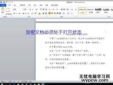 步驟一:打開要想要進行加密的word文檔。下圖是為方便演示特意制作的一個文檔,只有文檔處于打開狀態,才可以加密。