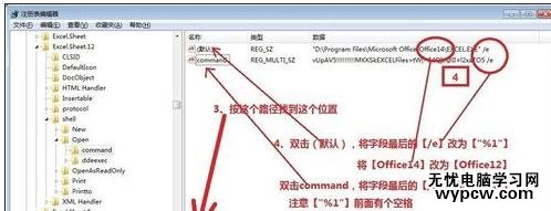 獨立打開窗口步驟6:由于安裝路徑不同,字段的路徑也不同,保險起見,如果字段中間是【Office14】的,改為12只修改字段最后的【/e】