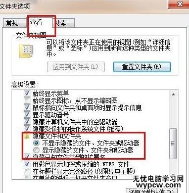 打開文件夾選項后,點擊查看,找到隱藏文件夾。下圖所示