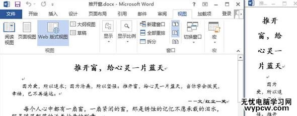 1、我們現在選中其中一個需要進行并排查看的Word窗口,切換到“視圖”選項卡,然后單擊“窗口”組中的“并排查看”按鈕。