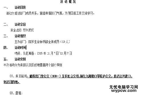然后策劃書的框架打好了、思路理清了、就往這些框架里面填充本次活動所要準備的材料。詳情見下圖;