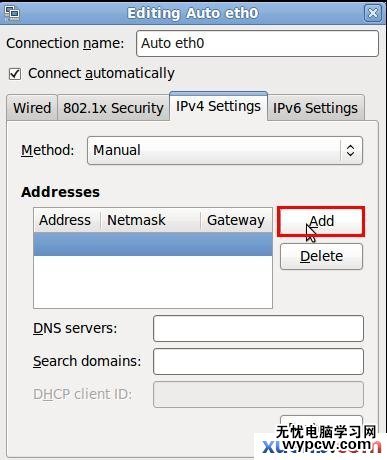 點擊右邊的Add按鈕,然后在Addresses下面就會多出一行空的,我們在這里添加對應的參數就可以了