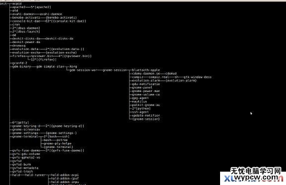pstree以樹狀顯示正在運行的進程。樹的根節點為pid或init。如果指定了用戶名,進程樹將以用戶所擁有的進程作為根節點。