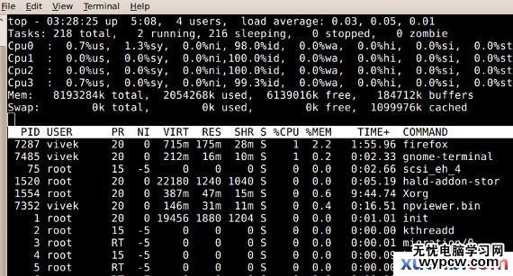 top命令提供了運行中系統的動態實時視圖。在命令提示行中輸入top:
