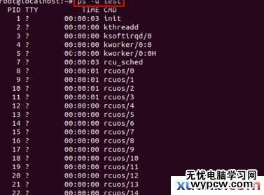 6在控制臺使用ps命令“ps -u test”,查看當前系統中test用戶運行的所有進程。