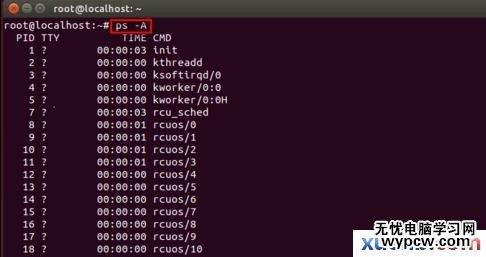 在控制臺使用ps命令“ps -U root -u root -N”,查看當前系統中非root運行的所有進程。