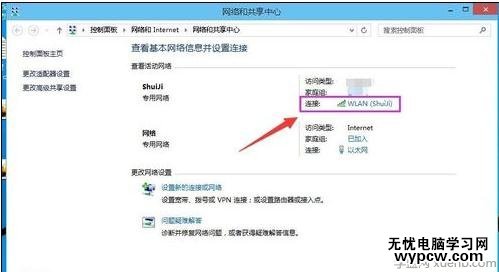 進入網絡和共享中心,然后再見點擊【連接XX】那里,如下圖所示操作就可以了。