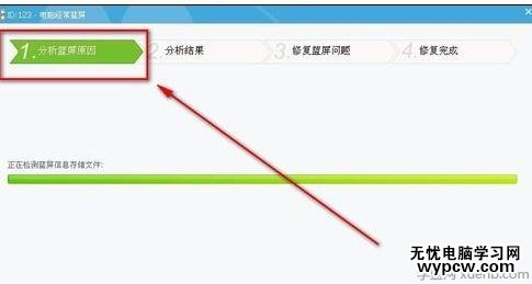 進入藍屏檢測過程,首先軟件會分析藍屏原因,分析完成后點擊【下一步】。