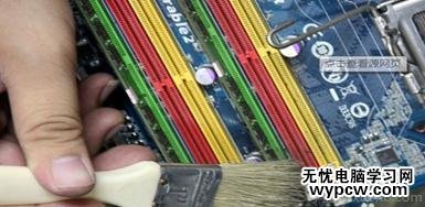 用毛刷和酒精清晰內(nèi)存條插槽,注意酒精不要弄的太多,一點(diǎn)即可。