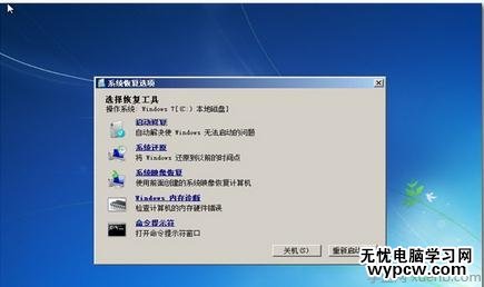 4、 輸入確定后將會進入的是系統(tǒng)恢復(fù)選項,在這個界面我們可以看到“啟動修復(fù)”選項,這就是我們現(xiàn)在需要的。如果你有其他需要,也可進行其他選項的操作。