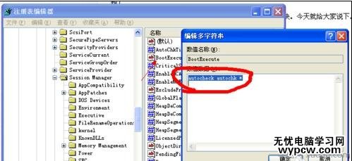 依次選擇“HKEY_LOCAL_macHINE/SYSTEM /CurrentControlSet/Control/Session Manager”子鍵,然后在右側窗口中找到“BootExecute”鍵值項并將其數(shù)值清空,最后保存按“F5”鍵刷新注冊表即可。