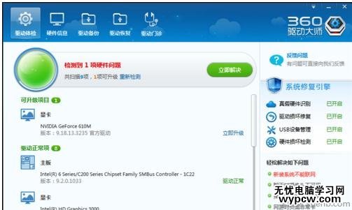 進(jìn)入系統(tǒng)后,我們要檢測一下最近有沒有更新了某些硬件的驅(qū)動,或者是安裝什么新的硬件,如果是更新了硬件的驅(qū)動,那么我們建議使用360驅(qū)動大師,重新安裝一下驅(qū)動程序。