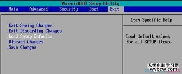 2、如果上面的設置還是不能解決的話,可以將bios進行復位,進入bios界面,切換到“Exit”選項,移到光標到“Load Setup Defaults”,回車復位即可,如圖所示: