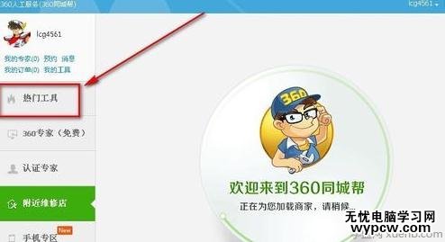 進入360人工服務工具欄,在這里可以與360的安全專家進行溝通,這里我們要使用工具欄中的藍屏恢復功能,點擊【熱門工具】。
