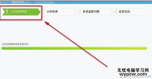 進入藍屏檢測過程,首先軟件會分析藍屏原因,分析完成后點擊【下一步】。