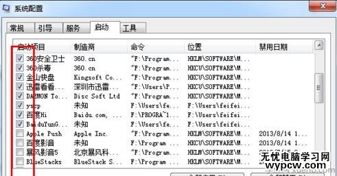 切換至“啟動”選項卡,然后禁用部分隨系統啟動程序或全部,最后點擊“確定”按鈕重啟電腦。