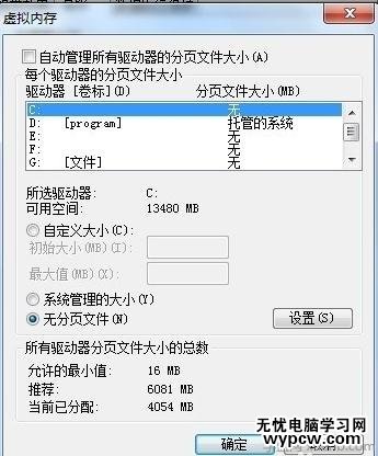 不管XP還是WIN7都有設(shè)置虛擬內(nèi)存,系統(tǒng)托管的虛擬內(nèi)存只要磁盤空間大就不會導(dǎo)致藍屏,但是有的磁盤被塞得爆滿,這才導(dǎo)致的藍屏,那么怎么辦呢,這個把虛擬內(nèi)存設(shè)置盡量是真實內(nèi)存的1.5到2倍吧!