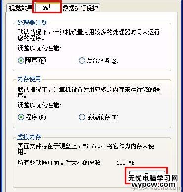 切換至“高級”選項卡,點擊“虛擬內存 更改”按鈕。