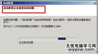 3,系統自動啟動修復程序,一般系統文件丟失等問題可以直接修復,不能直接修復的也會給出解決方案
