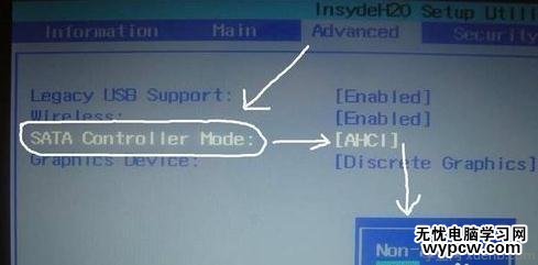 然后在選中SATA Controller mode那個選項,按回車后出來兩個選項,然后選中AHCI 那個選項,將他切換為IDE即可。