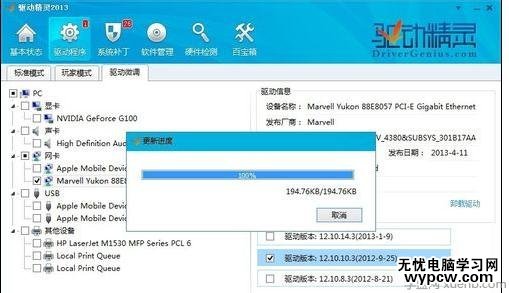 更新筆記本無線網卡驅動之二:使用第三方軟件幫助安裝驅動。這里以驅動精靈2013為例,可以官網免費下載。打開以后先點擊“驅動程序”按鈕,然后再點擊“驅動微調”選項,如圖所示