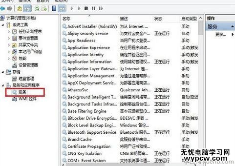 檢查筆記本無線服務為是否開啟,在桌面的計算機(我的電腦)上選擇右鍵,然后選擇“管理”之后即可進入計算機管理,然后再進入“服務項”,如下圖: