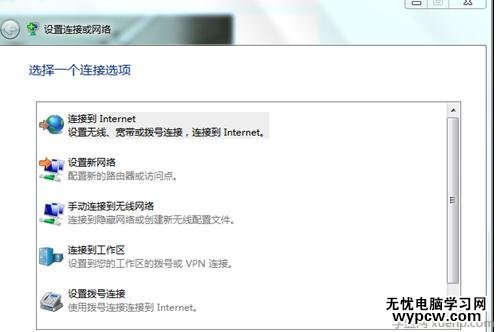 下面的步驟是為了排除貓(調制解調器)是不是壞了。還是打開網絡和共享。點擊中間的設置連接和網絡。選擇連接到inte.net。輸入寬帶的賬號密碼。